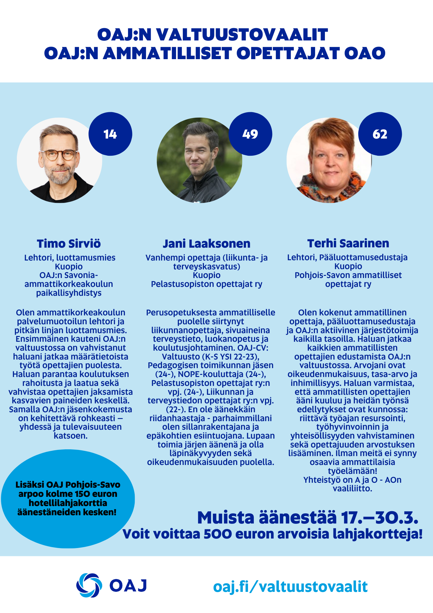OAJ:n valtuustovaalit järjestetään sähköisesti 17.-30.3.2026.